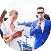 Если Вы не хотите ломать голову над тем, как развлекать многочисленных гостей во время банкета, то Вам необходим профессиональный тамада на свадьбу. Такой человек способен развеселить любую публику! На нашем портале представлены портфолио свадебных ведущих Вашего города. Страница каждого ведущего дополнена контактными данными, описанием услуг, фотографиями с проведённых праздников. Также Вы сможете найти отзывы других молодожёнов о работе того или иного свадебного ведущего.
